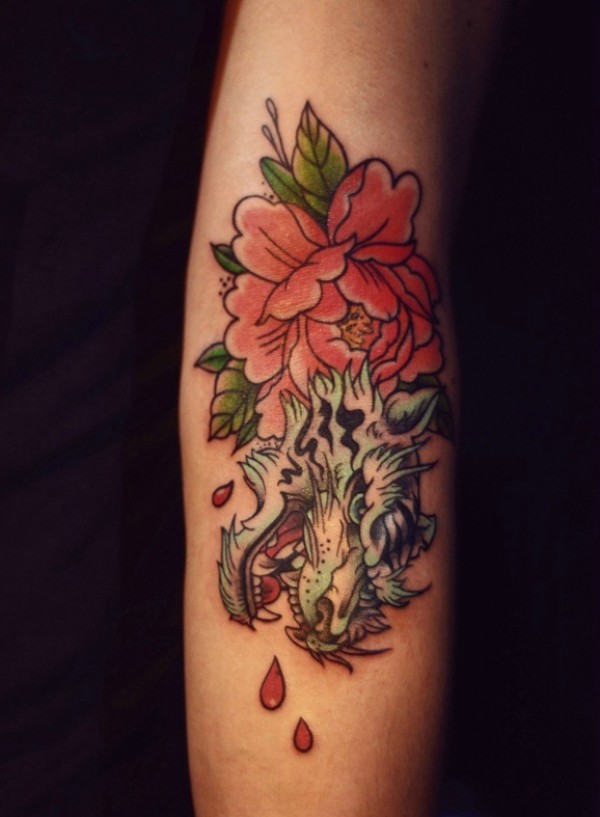 手臂莲花蛇纹身图案_臂部纹身图案大全_纹身图吧