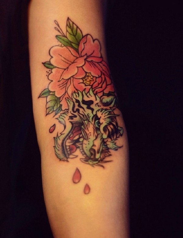 手臂莲花蛇纹身图案_臂部纹身图案大全_纹身图吧