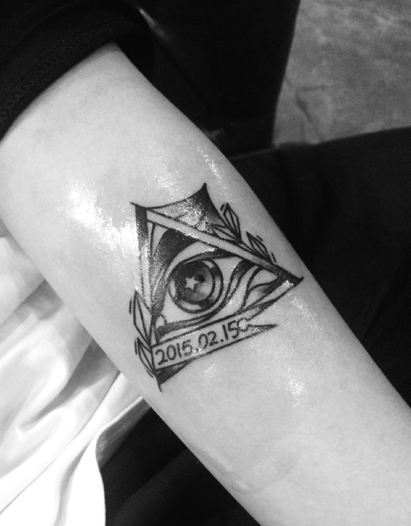 几何图形和眼珠结合的个性情侣纹身