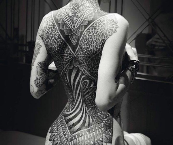 性感女生满背创意文身作品