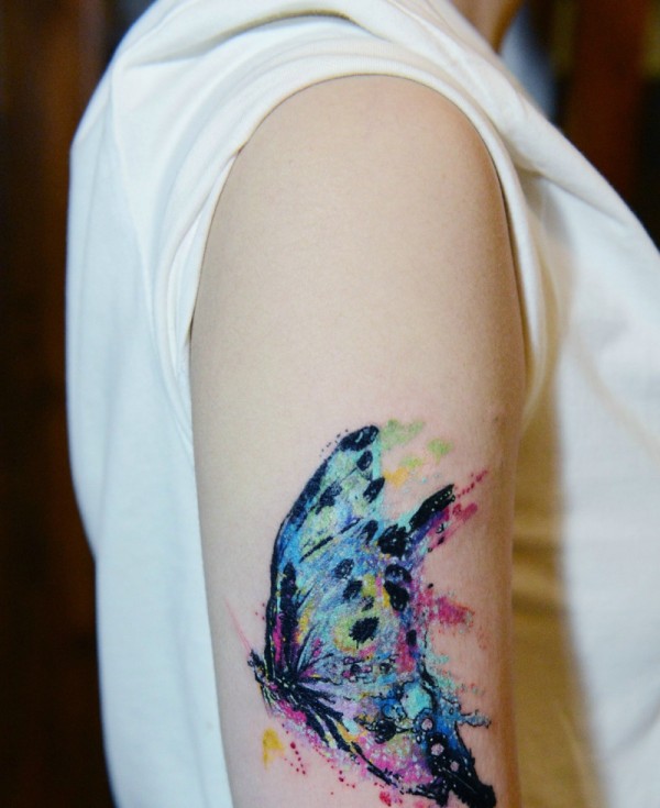 翩翩起舞的花色蝴蝶手臂纹身图片