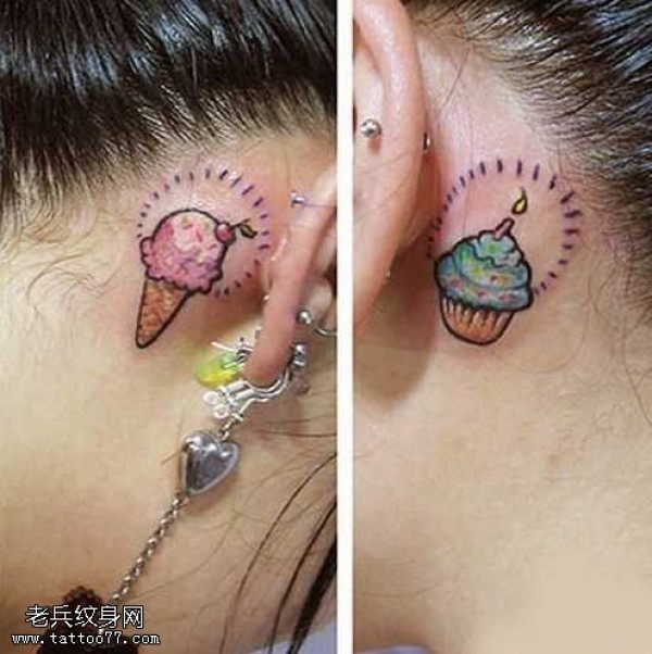 多款女生耳后黑色线条素描文艺小清新小图案纹身图案
