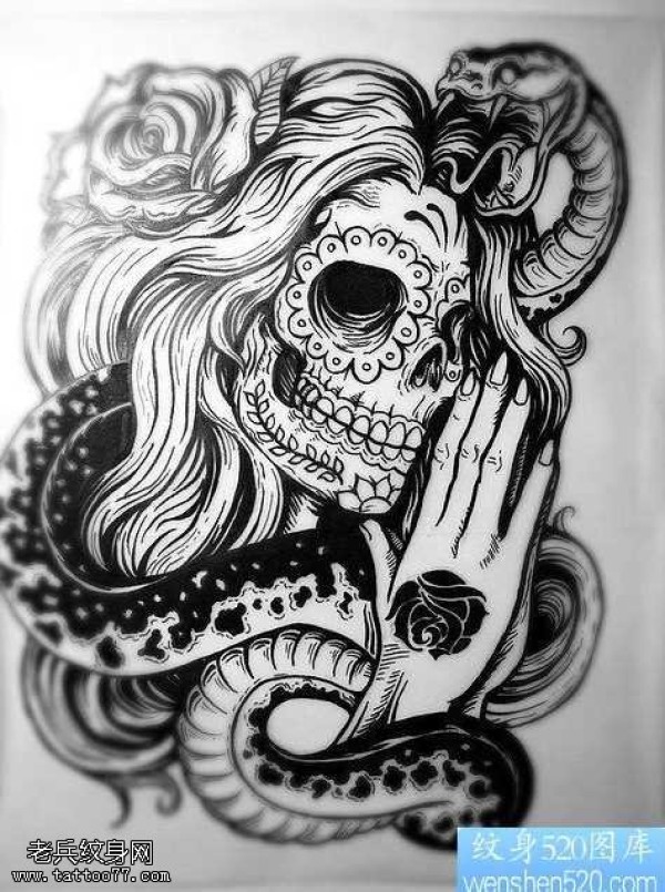 能面万媚纹身手稿_52张日式能剧面具纹身手稿图案素材欣赏