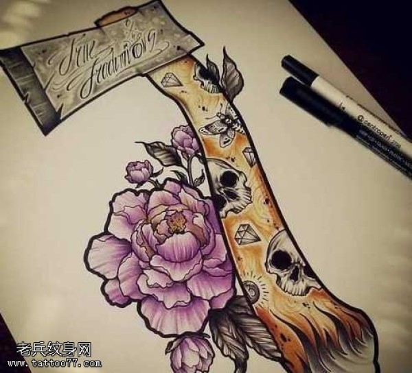 斧头玫瑰纹身图案