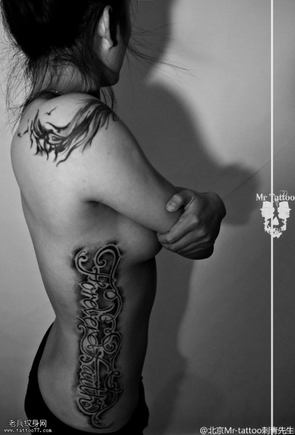 花体字纹身--一组男性漂亮的花体字纹身图案