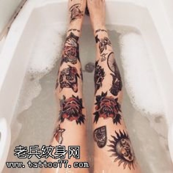 女孩腿部唯美刺青_腿部纹身图案大全_纹身图吧