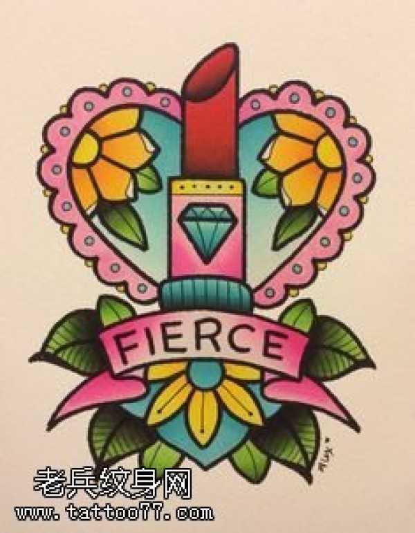手稿彩绘一支口红纹身图案