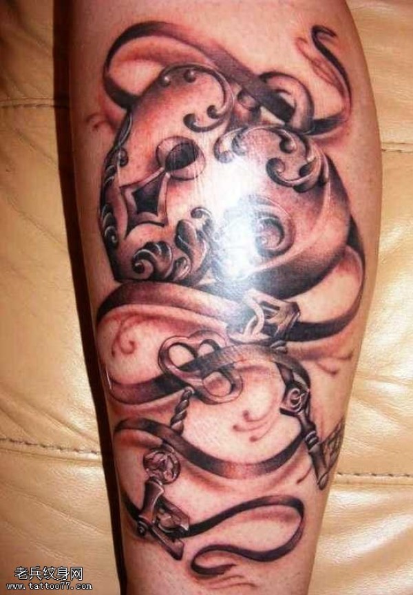 腿部锁纹身图案