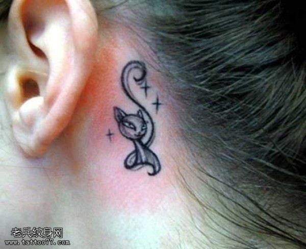 多款女生耳后黑色线条素描文艺小清新小图案纹身图案
