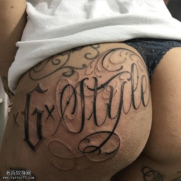 屁股上的花体字符纹身图案