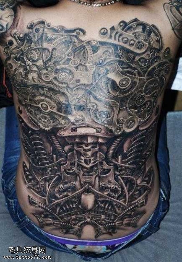 背部超酷机械纹身图案