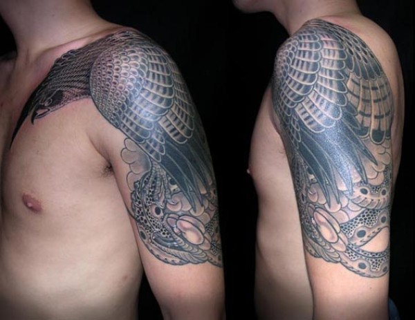 大臂到前胸鹰纹身图案