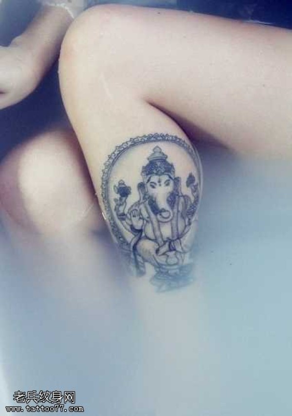 腿部大象图腾纹身图案