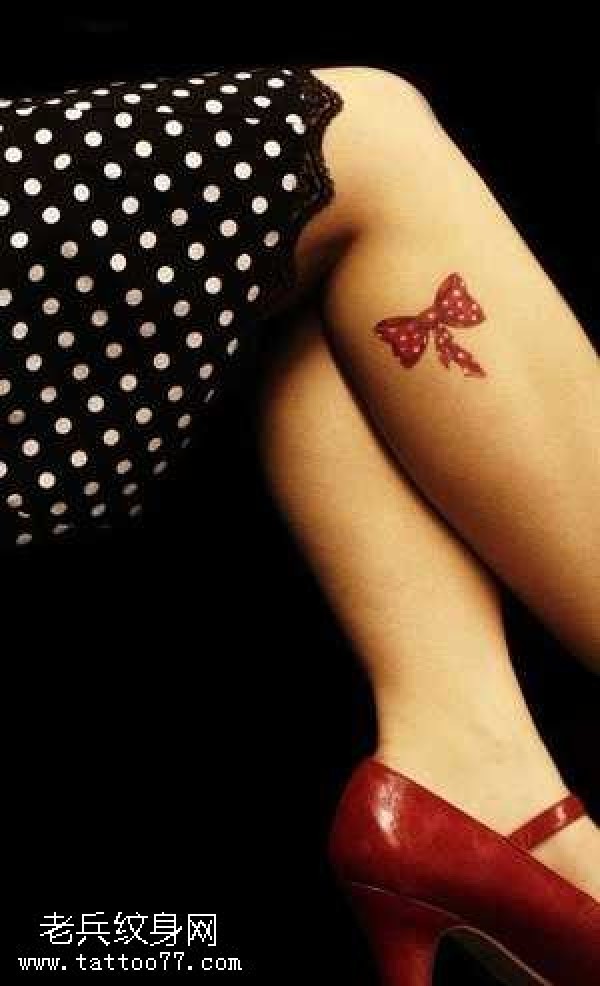 腿部小清新蝴蝶结纹身图案