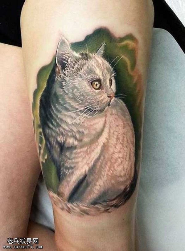 腿部好看的猫咪纹身图案