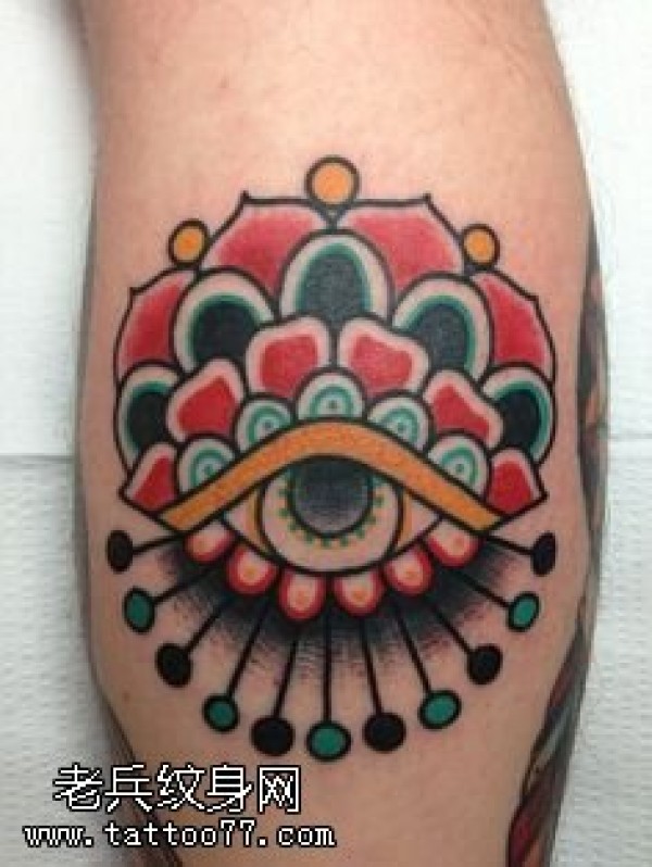 小腿彩绘梵花眼睛纹身图案