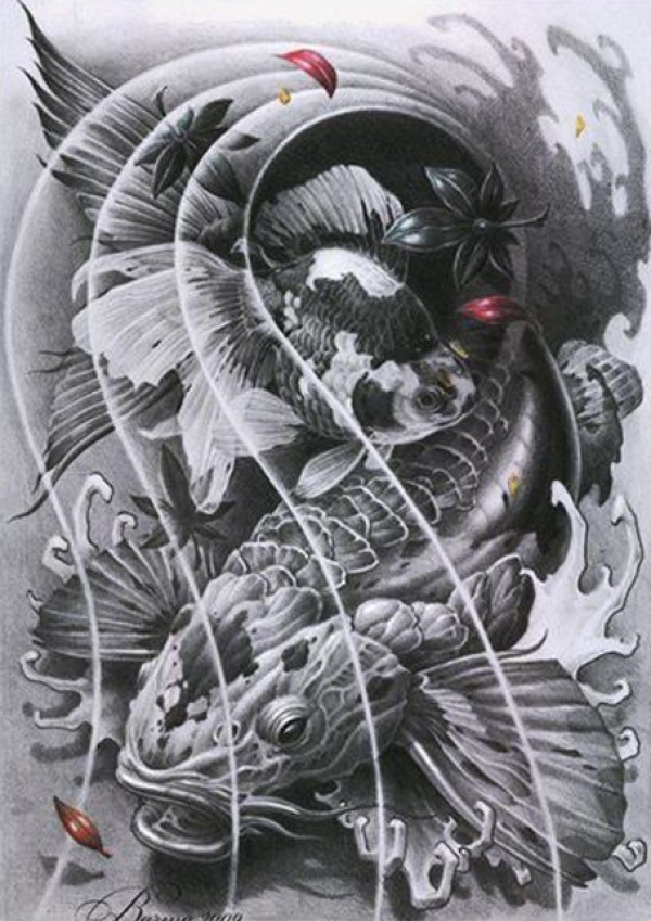双鱼座纹身手稿_45张十二星座之双鱼手稿纹身图案