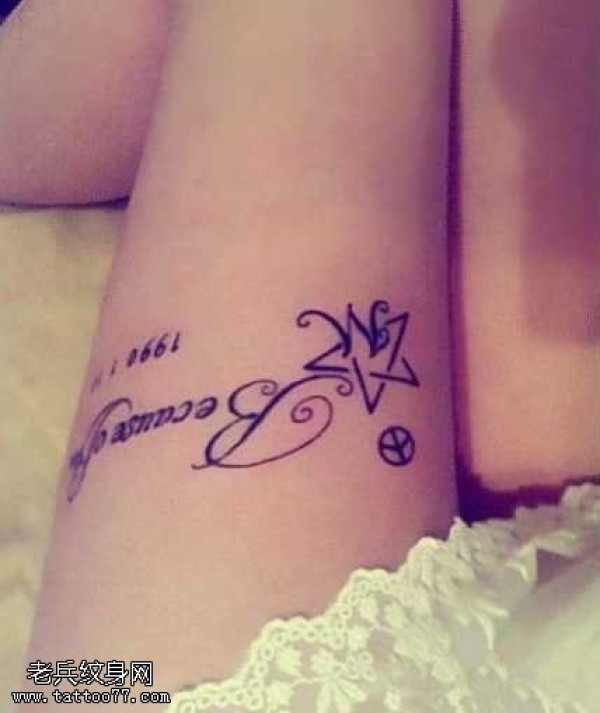 腿部星星英文纹身图案