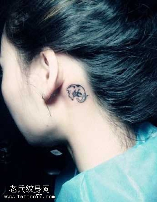 多款女生耳后黑色线条素描文艺小清新小图案纹身图案