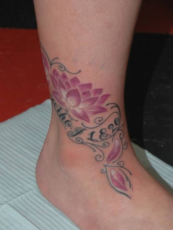 脚踝处荷花图腾数字纹身