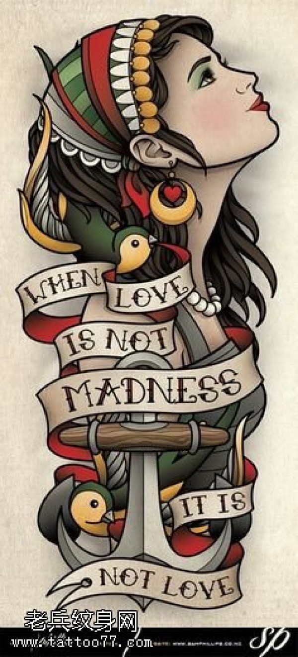 手稿民族风美女纹身图案