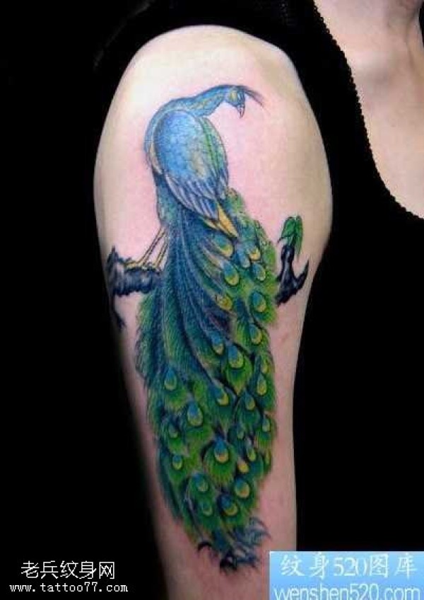 胳膊彩色凤凰纹身图案
