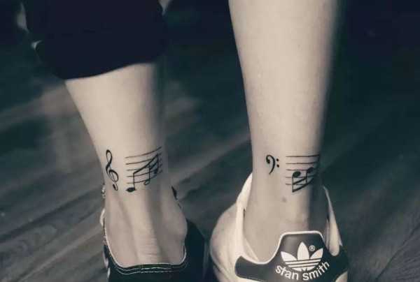腿部音乐符艺术型的情侣纹身图片