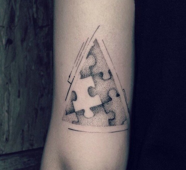 手臂点刺黑灰几何拼图纹身刺青