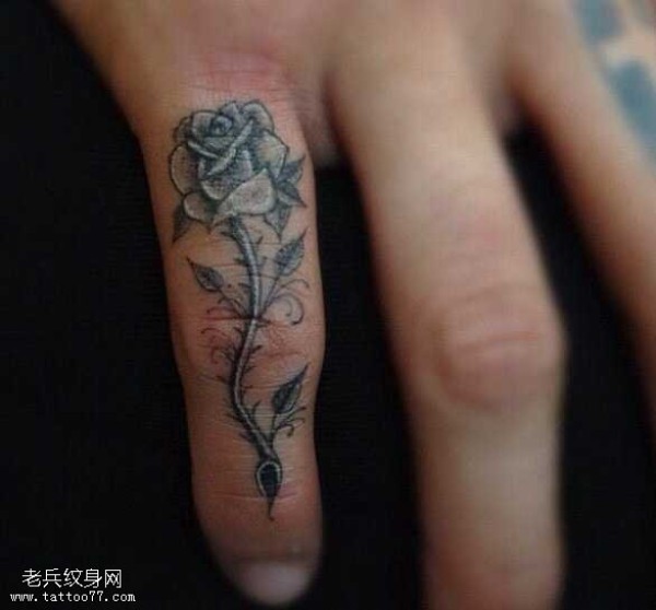 手指纹身之玫瑰花纹身图案