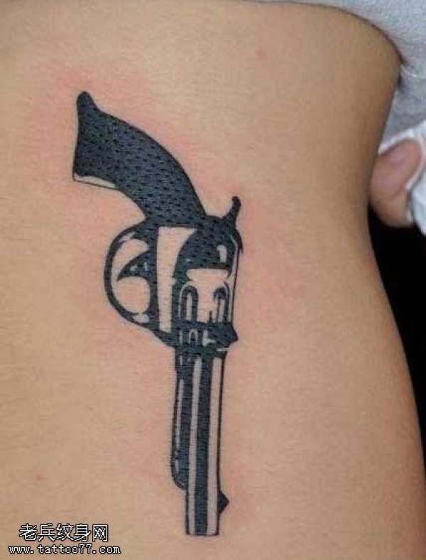 腰部手枪图腾纹身图案