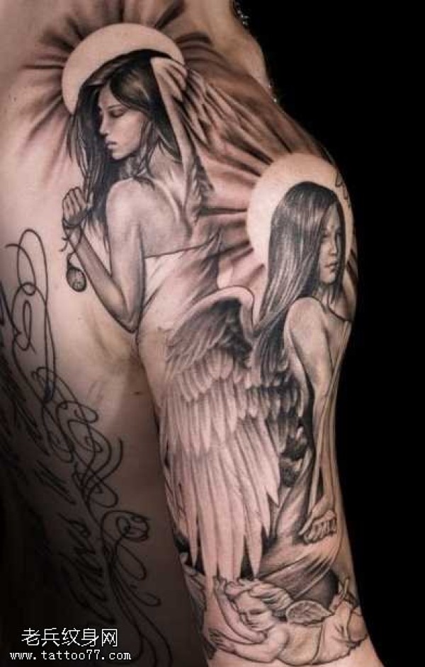 两个美女天使纹身图案