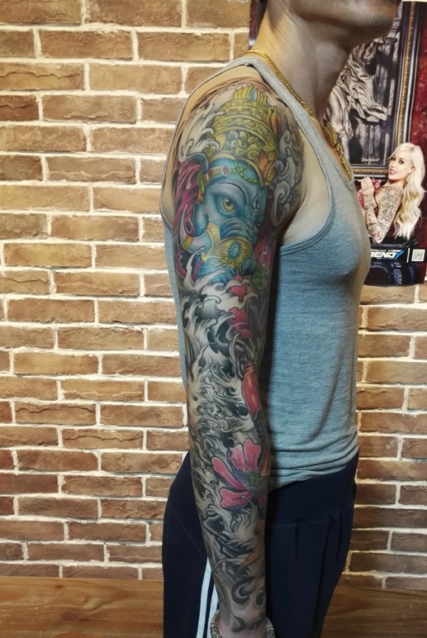 花臂精致耐看的小象神纹身刺青