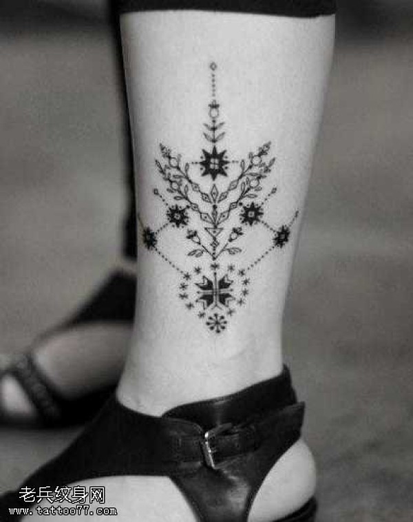腿部花环图腾纹身图案