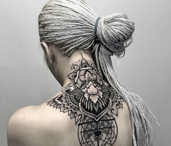 后颈部纹身小图--9张女生脖子后颈处的简约纹身图案