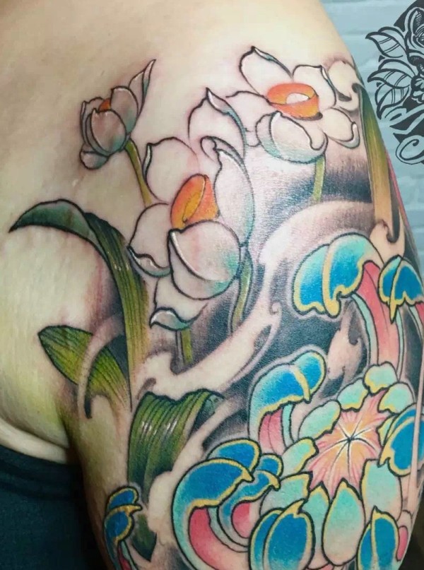 逼真的超现实主义花纹身图案来自纹身师莫拉莱斯