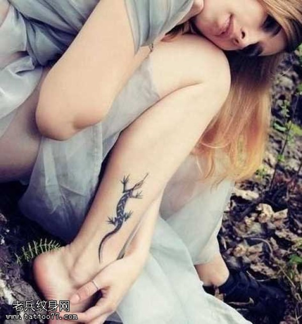 脚部蜥蜴纹身图案