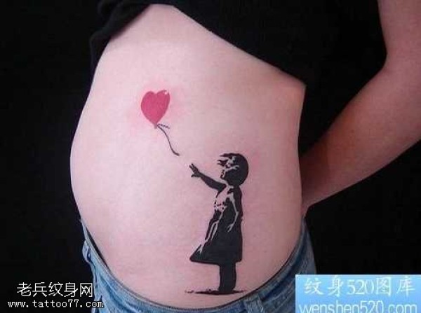 分享一款腰部时尚性感的蝶恋花纹身图案_腰部纹身图案大全_纹身图吧