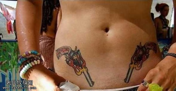 分享一款腰部时尚性感的蝶恋花纹身图案_腰部纹身图案大全_纹身图吧