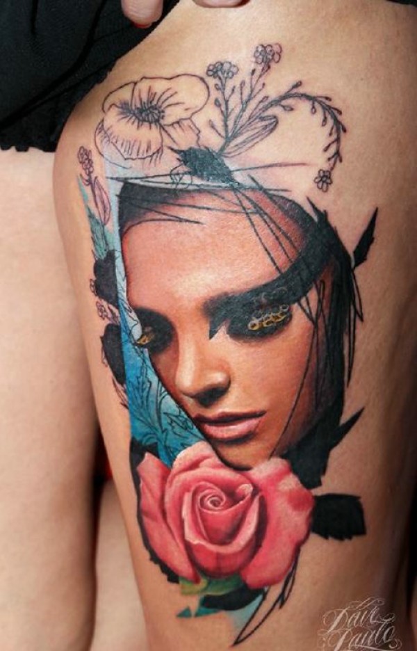 清纯女孩腿上可爱肖像纹身图片_肖像纹身图案大全_纹身图吧