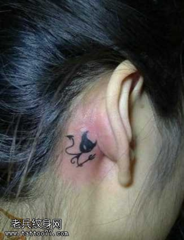 耳部小恶魔图腾纹身图案