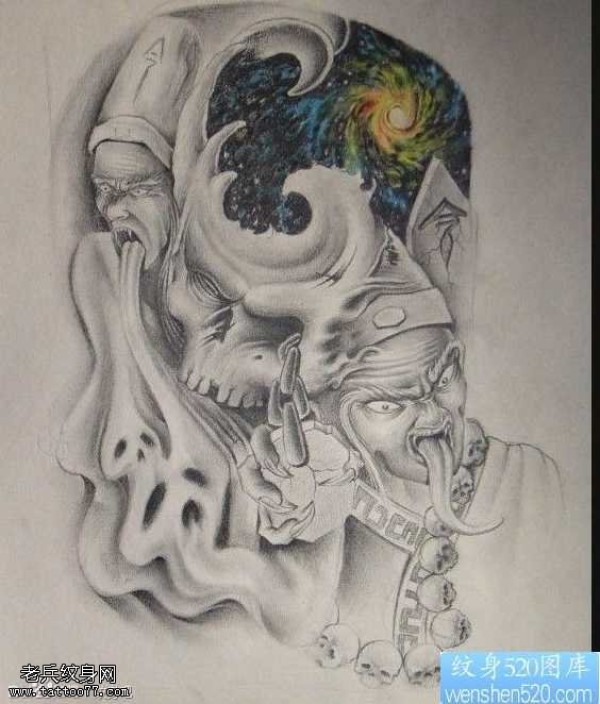 能面万媚纹身手稿_52张日式能剧面具纹身手稿图案素材欣赏