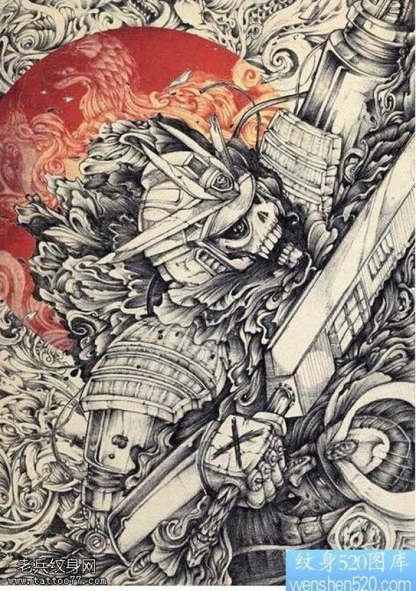 手稿骷髅武士纹身图案