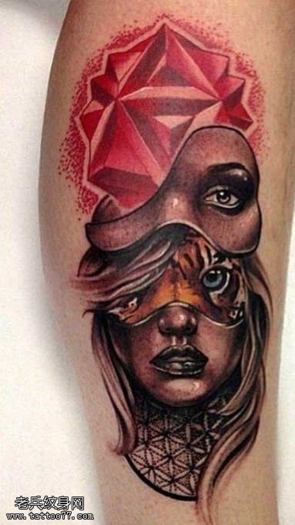 胳膊面具女郎纹身图案