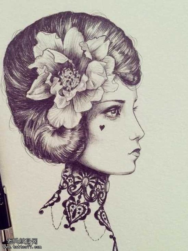 能面万媚纹身手稿_52张日式能剧面具纹身手稿图案素材欣赏