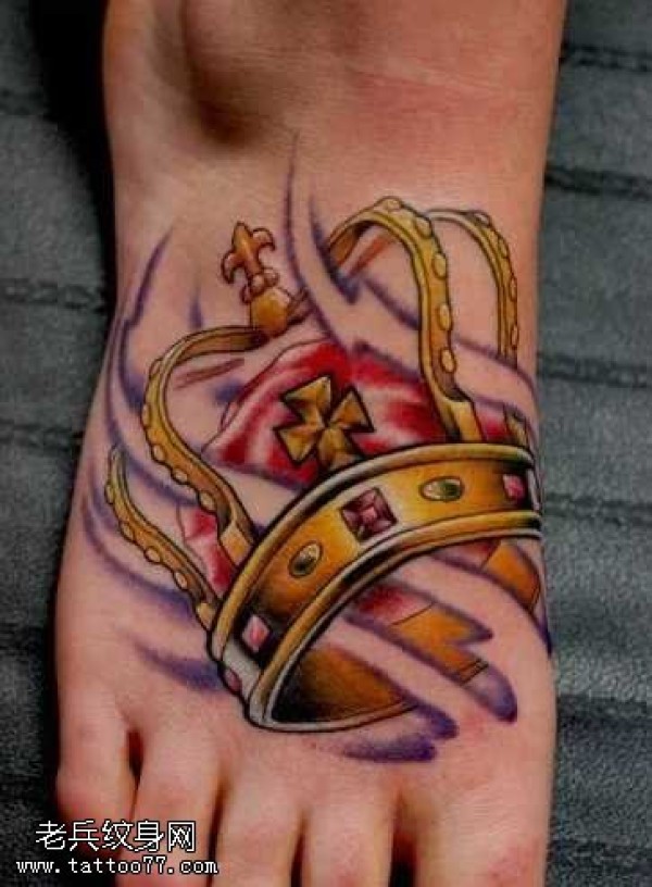 脚部黄皇冠纹身图案