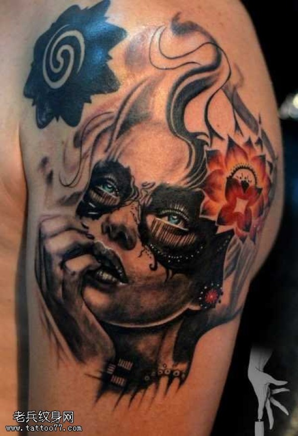 手臂莲花蛇纹身图案_臂部纹身图案大全_纹身图吧
