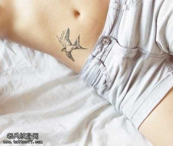 分享一款腰部时尚性感的蝶恋花纹身图案_腰部纹身图案大全_纹身图吧