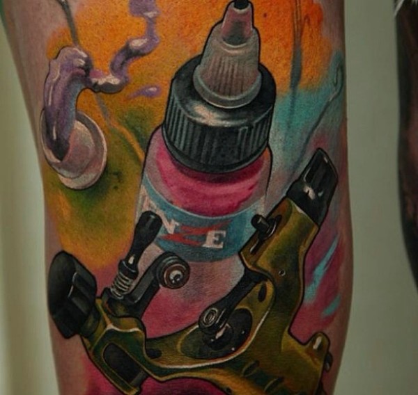 大臂彩色工具纹身图案很个性