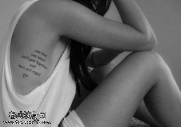 女生后腰纹身黑白灰风格抽象线条纹身图案