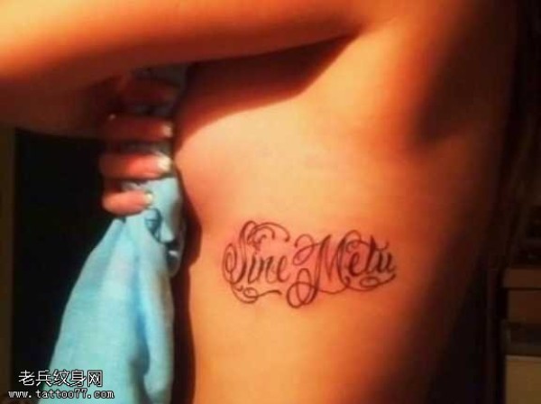 腰部独特英文字符纹身图案